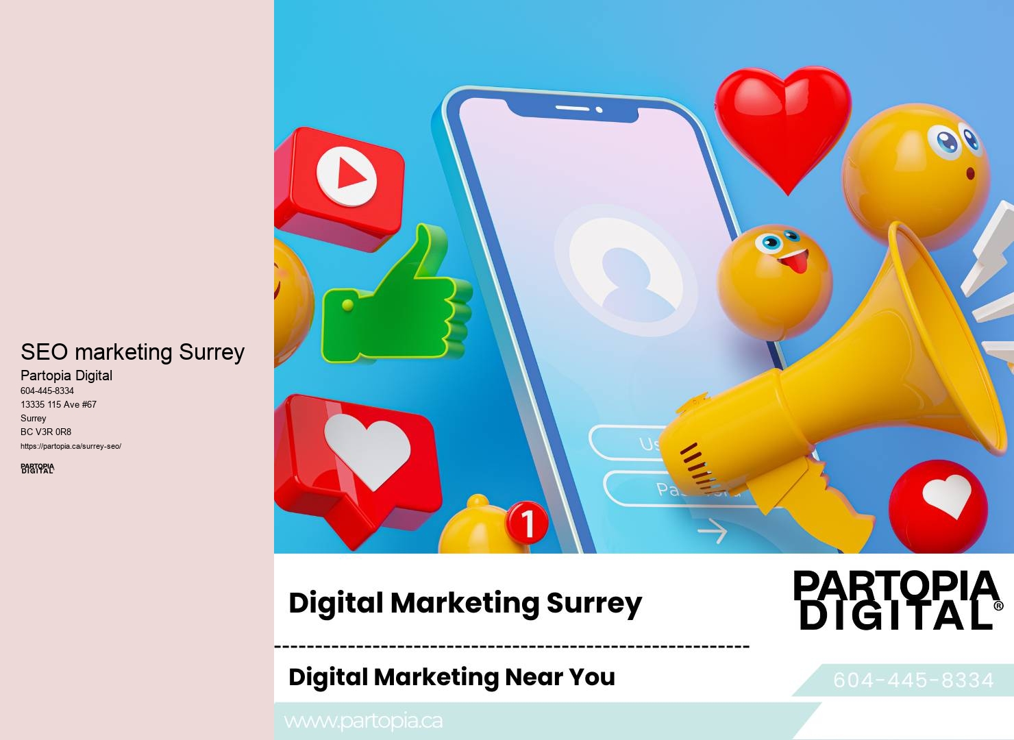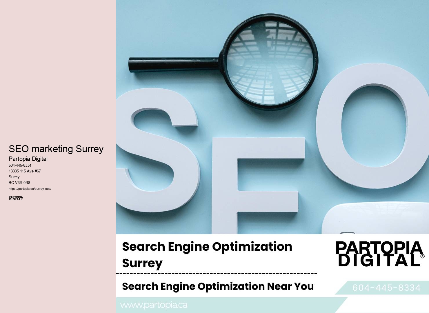 Remember, it's not just about stuffing keywords. They'll look at your website structure, content quality, keyword optimization, and backlink profile. They've got a broad range of SEO solutions tailored specifically for local businesses in Surrey, ensuring there's something perfect for your unique needs. In the digital realm, where the only constant is change, Partopia Digital emerges as a beacon of innovation, redefining SEO excellence in Surrey, BC. It's their way of soaking in every detail about your business, ensuring they catch your vision just as you see it.